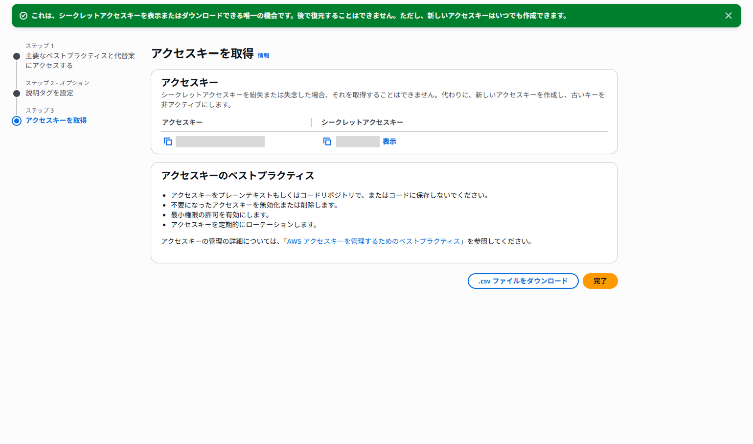 アクセスキー作成画面